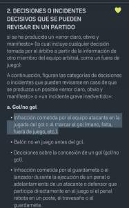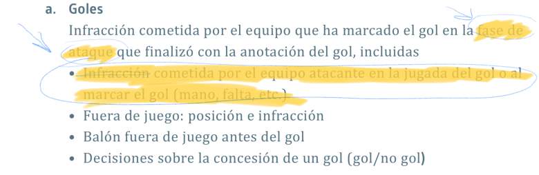 “Infracción cometida por el equipo que ha marcado el gol en la fase de ataque que finalizó con al anotación del gol”- Protocolo del VAR 2018-19